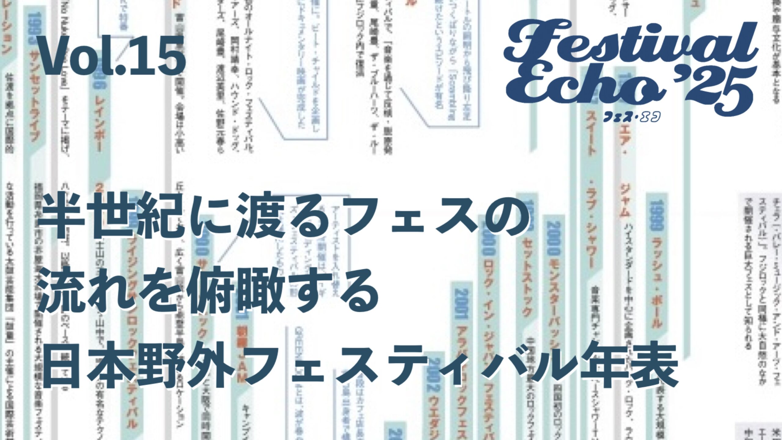 アーティストのインタビューから、野外フェスの楽しみ方やキャンプフェスに必要な装備やテクニックなど、ビギナーから強者まで、毎年、多くの人が刊行を楽しみにしているフジロックフェスティバルのオフィシャル・フリーマガジン『FESTIVAL ECHO』(通称フェスエコ)。2004年から長きにわたって発行を続けてきたフェスエコが1年ぶりに復刊しました。例年同様、今年もアキママとのコラボ企画として『FESTIVAL ECHO’25』の特設ページを開設!!