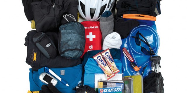 初めてのバイクパッキングなので今回はテント・寝袋・マットにはNordiskの超軽量シリーズを選択。テントがLofoten 1 ULW(約600g)、寝袋はOscar +10℃(約300g)、マットはVen2.5(約300g)で合計約1.2kgぐらいだ。スタッフバッグを省略すれば1kgを切れるが……とりあえず今回はそのまま袋付きで使用する。その他装備としては、バーナーはSOTOのウインドマスター、コッヘルはDUGのPOT M、テーブルはSOTOのフィールドホッパー、雨が降ったときのことも想定してPaaGoWORKSのニンジャタープも加えた。どうしても焚き火がしたかったのでSORA Titanium Gearのスーパーネイチャーストーブも追加。あとはレインジャケット、ファーストエイドキット、着替え、水筒、カトラリーなどなど。全部まとめて5kgぐらいになった。車体込みの総重量で約15~16kgといったところか。これでツーリングして、食材などはキャンプ地周辺で買い出しして、バックパックで背負って走る予定。個人的に食べるものは簡単なものでもいいが、氷とビールだけは外せないと思っているので、100円ショップで買ったアルミ保冷バッグを忍ばせている。