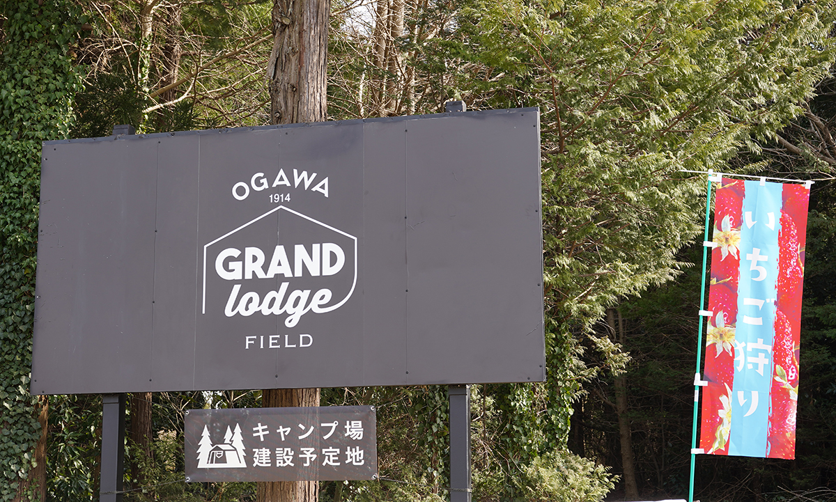 「ここは、ogawa GRAND lodge FIELDという名前で直営のキャンプ場にする予定なんですが、まだまだ整備しなければならないところがあって、開業は今年の夏ぐらいでしょうか。そちらは今後のお楽しみということで、まずはこの敷地内に併設したいちご園でいちご狩りを楽しんでいただこうと。ogawa GRAND lodge FARMという名前で3月5日にスタートしたばかりです」。