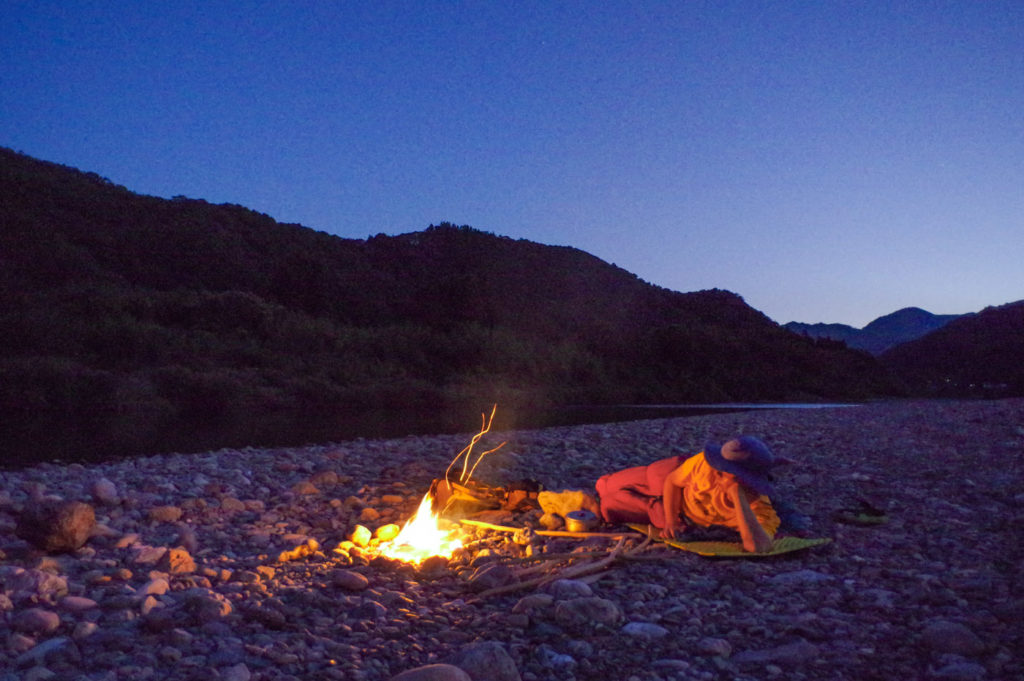 川面からのアクセスしかない河原でキャンプするときは、川の増水への備えは欠かせない。天候に注意し、やばそうなときには中止に。万が一のときの脱出策も用意しておこう。