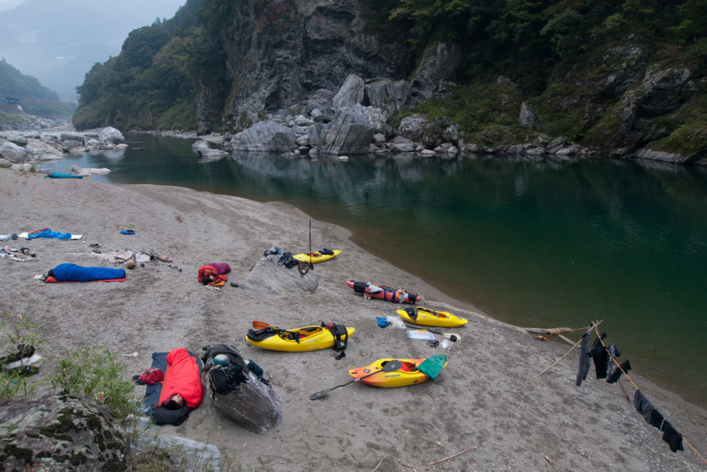 大豊町川口南の大杉橋から、穴内川が流れ込む吉野川橋までの約7㎞はかなりの過疎地で、川沿いの道の交通量は極端に少ない。谷もまあまあ深いので流域の人の目を避けられる。寝床に適した砂地の河原も見つけやすい。