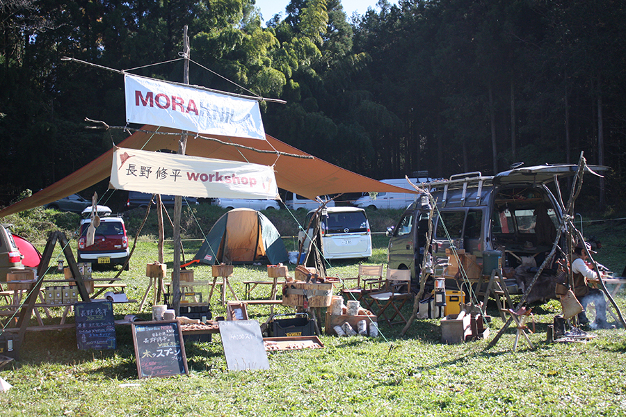 こちらもスペシャルゲスト長野修平さんのワークショップ。モーラーナイフを使った木のスプーン作り