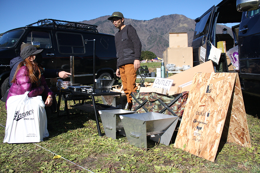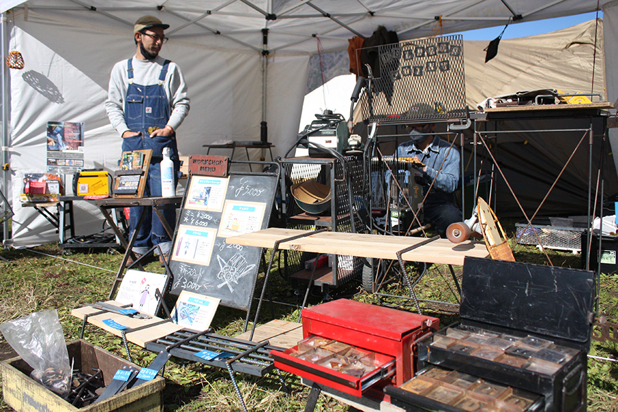 協賛や出店しているブランド/ショップは、ネイタルデザイン、ナンガ、ノルディスク、スミス、ダナー、パーゴワークスなどのアウトドアイベントでお馴染みのブランドや、鉄工・木工などのクラフト系ガレージブランド、4X4やキャンピングカーカスタムのお店や雑貨店、ライフスタイル系クリエイターの出展や体験型ワークショップなどさまざま。Flash Bugs Meetingと合わせるとなんと約100店以上もの出店になるそうです。全ては紹介しきれませんが、一部写真とキャプションでご紹介します。