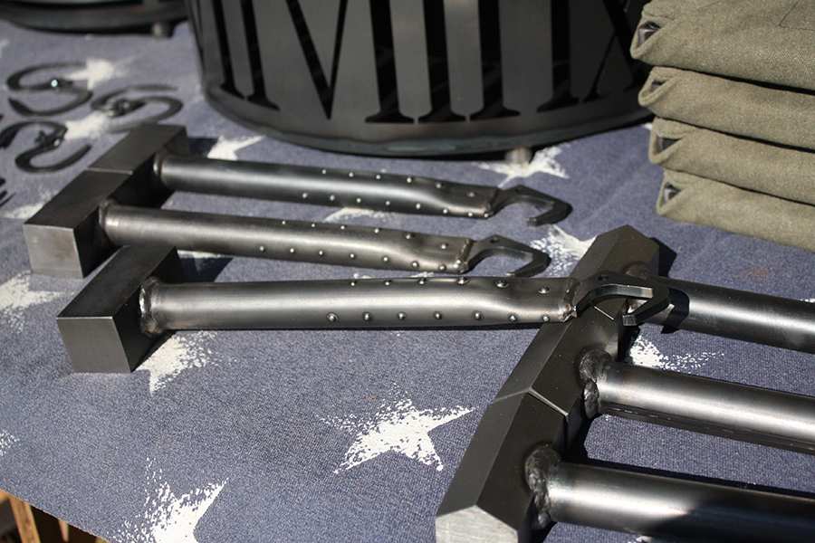 鉄製の焚き火台や各種キャンプギアが人気の山賊山(sanzoku mountain)。ゴツいハンマーの名前は「json」