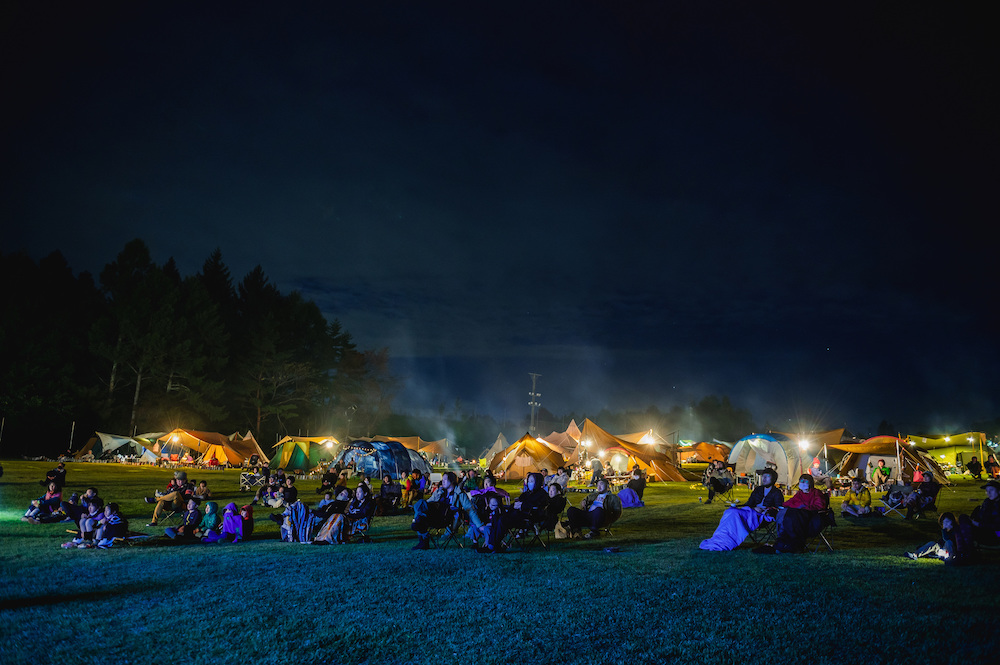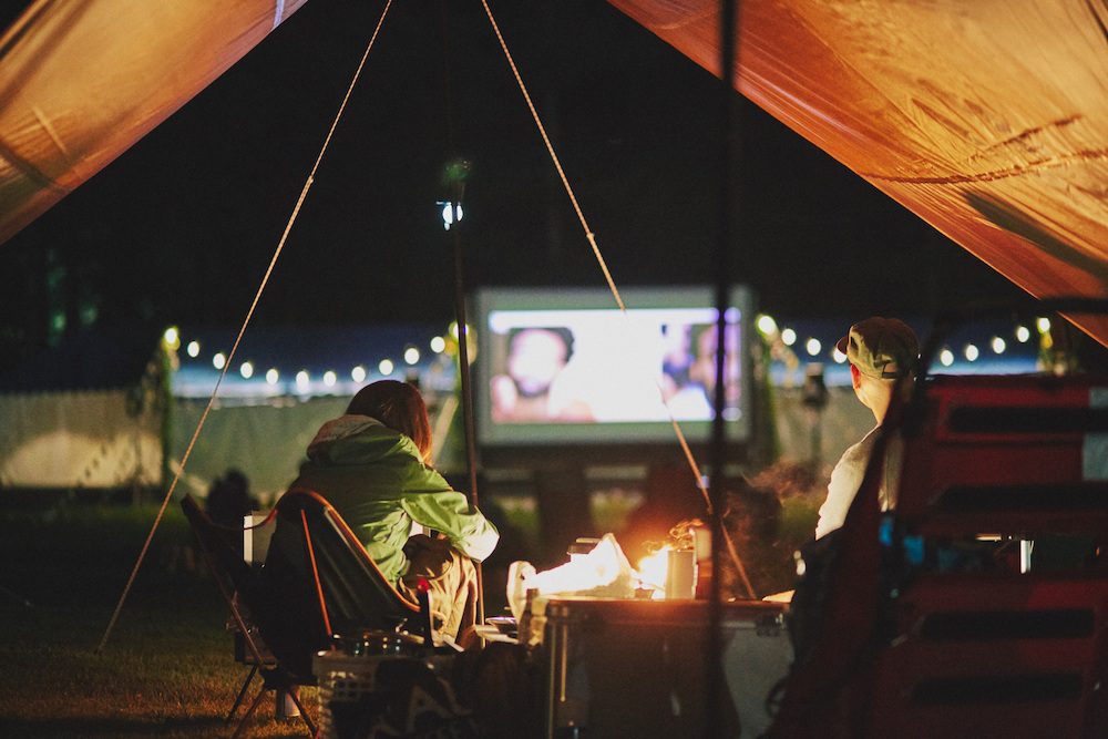 とにかくキャンプを楽しんでいる方が多かったのが印象的でした。ライブや映画の時間はステージ前にキャンプチェアやテーブルを持ってきてお酒を飲みながら思い思いに鑑賞されている人も多かったです。広い会場に少数限定なのでステージ前も非常に贅沢な空間になってました。