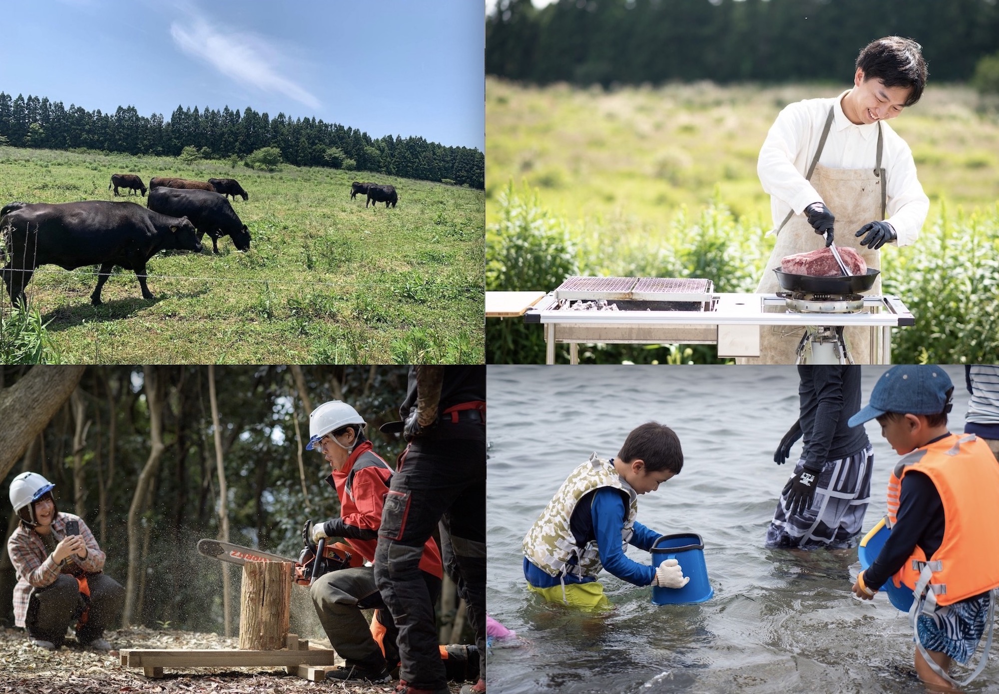 そんな背景を反映して、ABUキャンプフィールドは地域の第一次産業につながる体験プログラムを多く用意している。チェーンソーを使ったスウェーデントーチ作りや、魚さばき体験、海に潜って貝を拾う海士体験、特産の無角和種の生産現場を見学したのち、肉を焼き上げるツアーなど、阿武町の産業に触れられるコンテンツが多い。プログラムの指導を行なうのは、町内の林業や水産業のプロ。キャンプを楽しみながら、阿武町で営まれる暮らしを感じることができる。