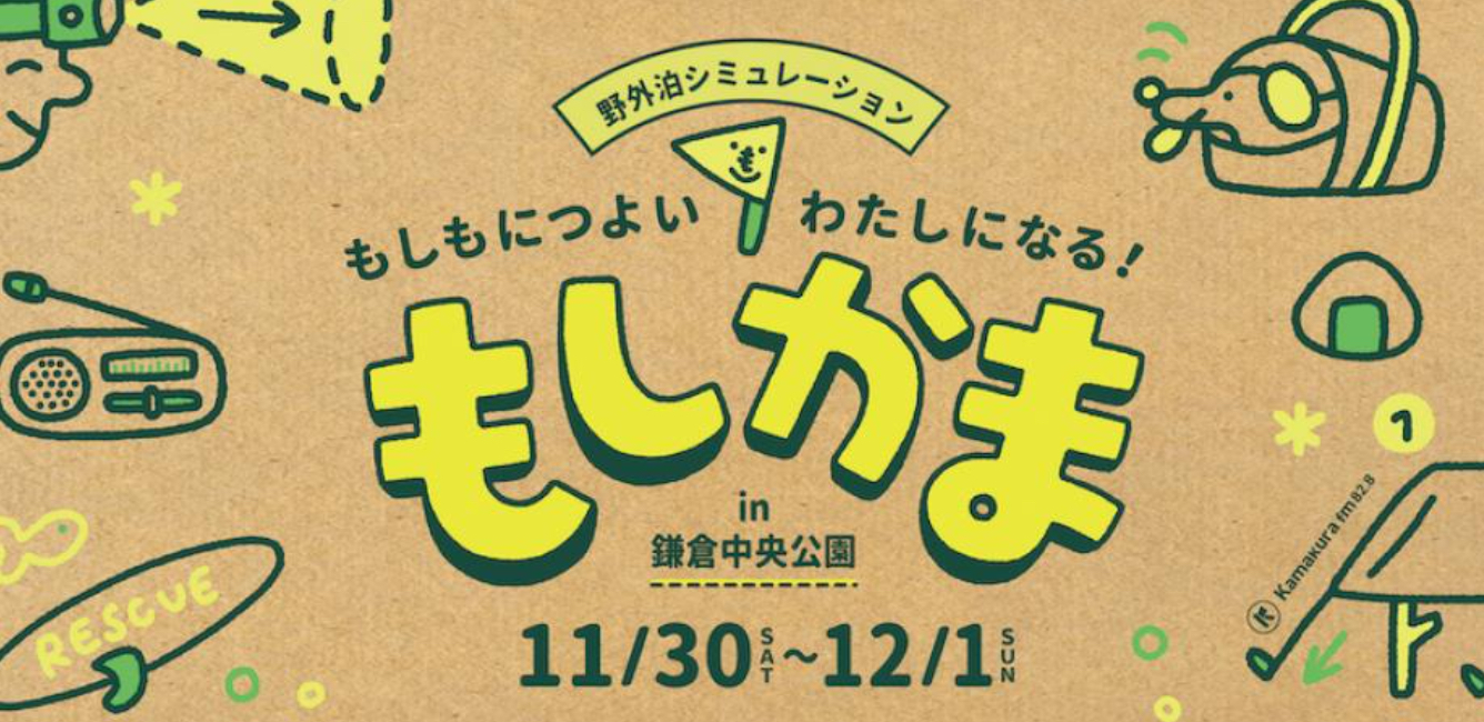 これは、11月30日、12月1日にかけて神奈川県、鎌倉市で開催される「野外泊シミュレーション もしかま in 鎌倉中央公園」の想定シナリオだ。実際に自分で用意した非常用持ち出し袋を背負って、指定した場所に集合。避難先での不測の事態を想定した1泊2日の実践形式の防災シナリオトレーニング。日ごろからどんな事態に備えて、どんな準備をしているのか、実際に野外で1泊を過ごしてみて初めて気づく、防災野営ワークショップだ。