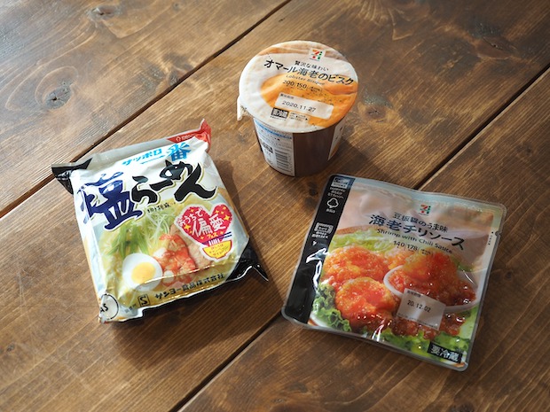 それとセブンイレブンの「オマール海老のビスク」と「エビのチリソース」。