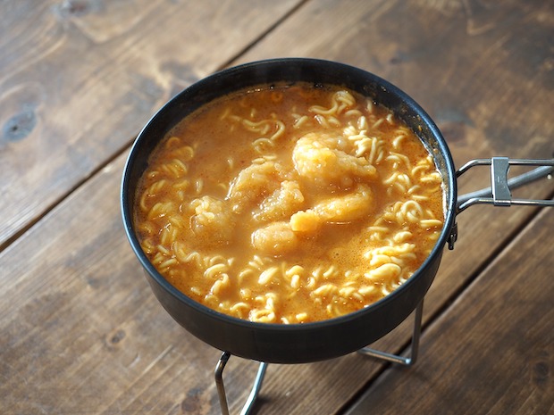 エビ好き集まれ!「ものぐさ男の山ごはん57」はWの追いエビで濃厚旨辛アレンジラーメン
