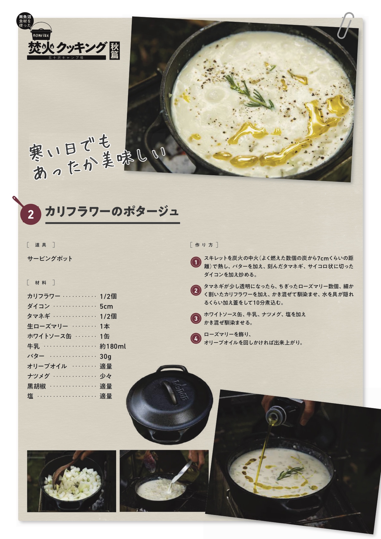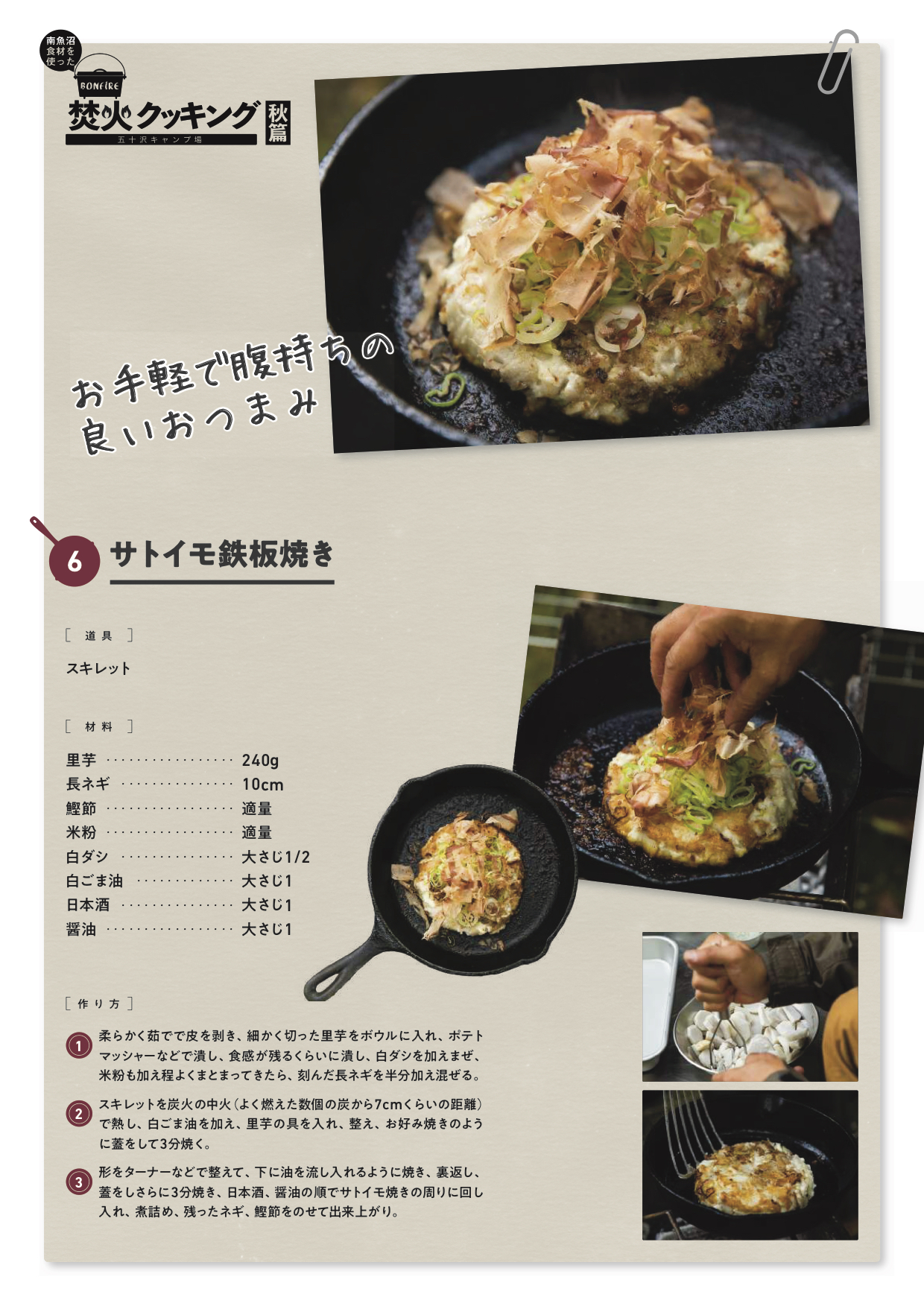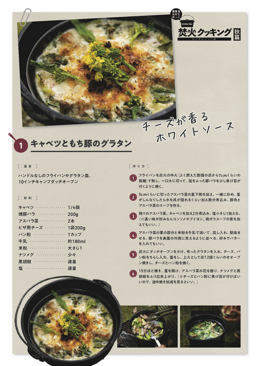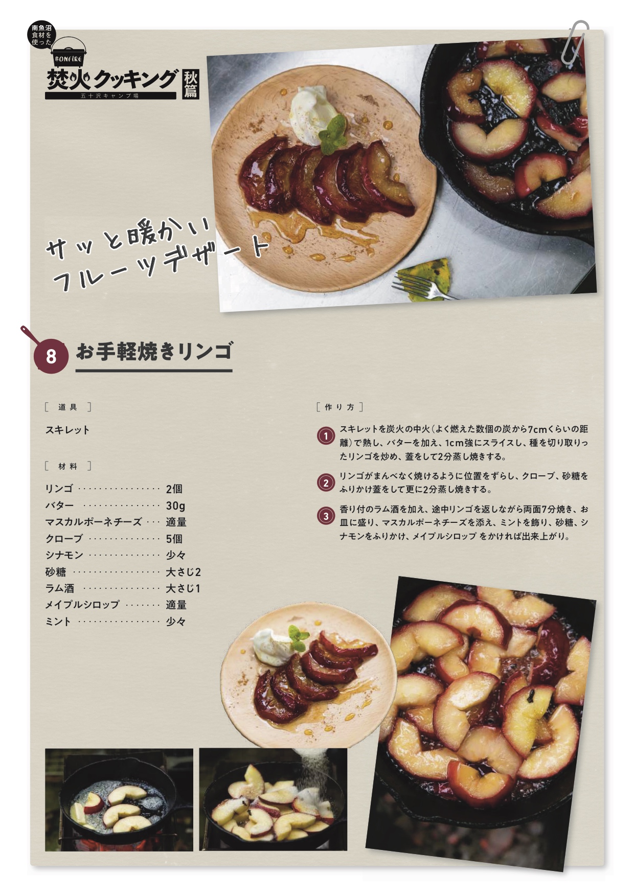 薪や炭に火をおこす作業が面倒に思えてつい遠ざけてしまうかもしれませんが、とくに暑さから解放される秋〜冬は炎を前にした調理もグンはかどるようになり、普段のキャンプがひと味もふた味も違った時間に。まさにこれからが焚き火料理のシーズンとも言えます。