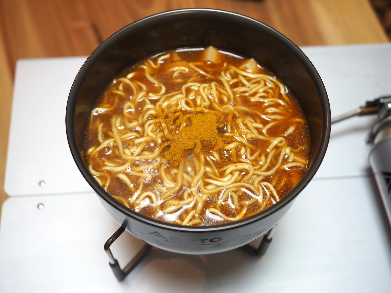 まぁ、マーボーカレーラーメンって言ってますからね。小さじ1~2くらいですが味を見ながら入れられるといいです。