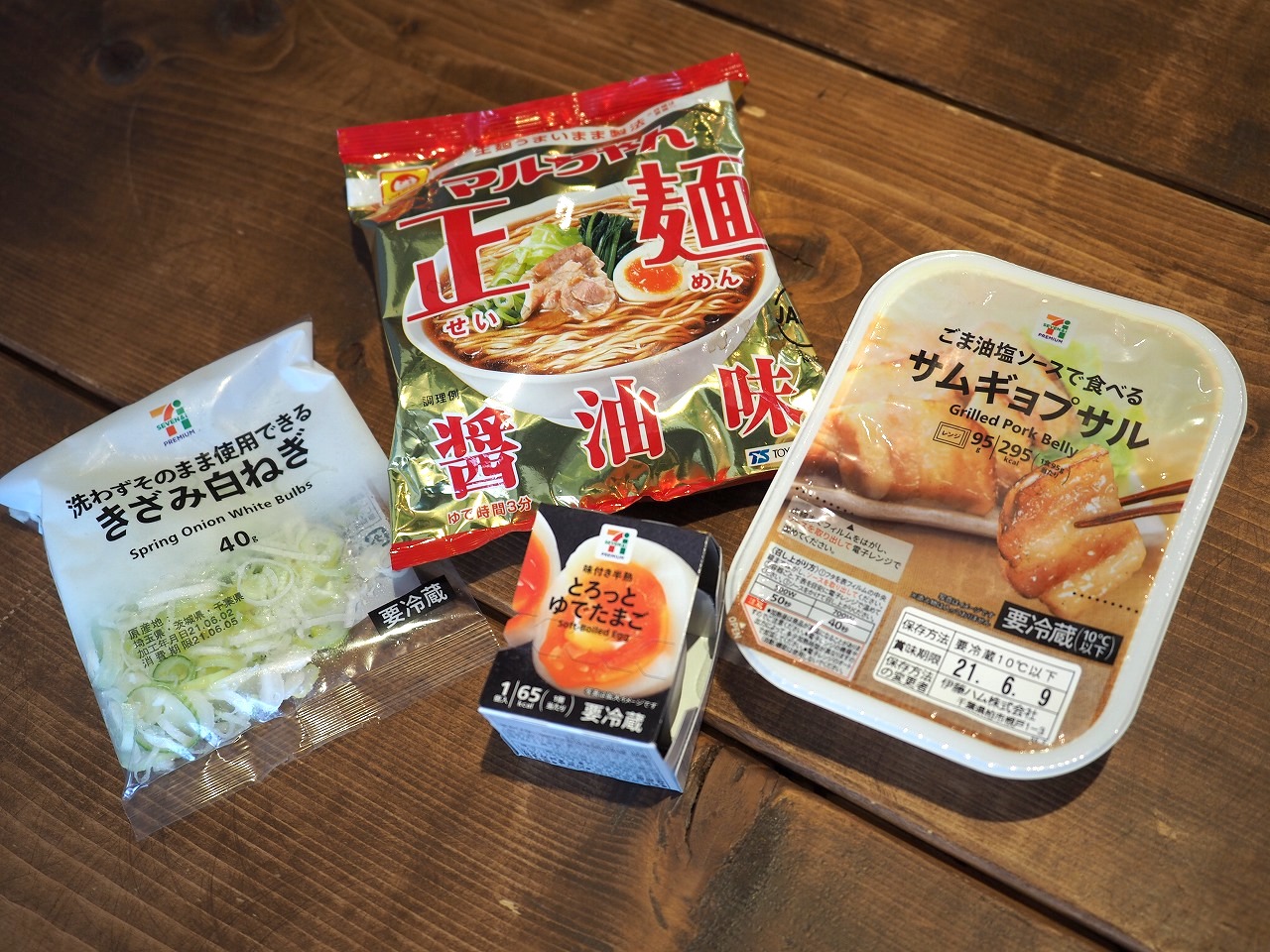 それと今回のキーアイテム「サムギョプサル」。コレについてくるタレが今回のメイン調味料です。そして「きざみ白ねぎ」と「とろっとゆでたまご」。