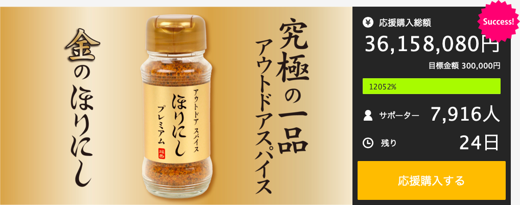 8月5日現在(画像出典元:MAKUAKE 金のほりにし)