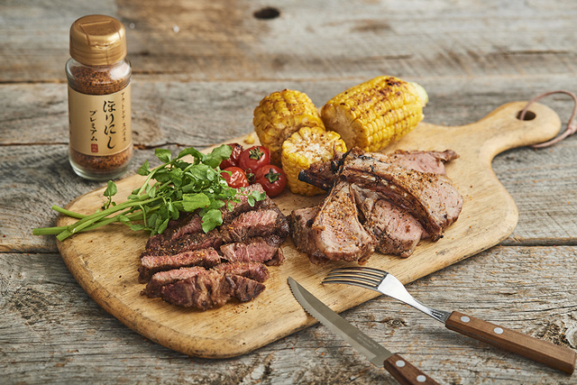 そしてさらに1年後である今年、プレミアムバージョンとして誕生したのが、この「金のほりにし」。「ほりにし」をベースに、希少価値が高く、香り豊かな白トリュフソルトをブレンド。約1年かけてテイスティングテストや、サンプル制作を繰り返して完成した珠玉の逸品。肉や魚との相性がもちろんいいことは「ほりにし」で保証されている。さらに今度の「金のほりにし」は、高級感ある香りと風味が特徴で、香りの強くない卵や野菜料理のアクセントとして使うのもオススメだ。