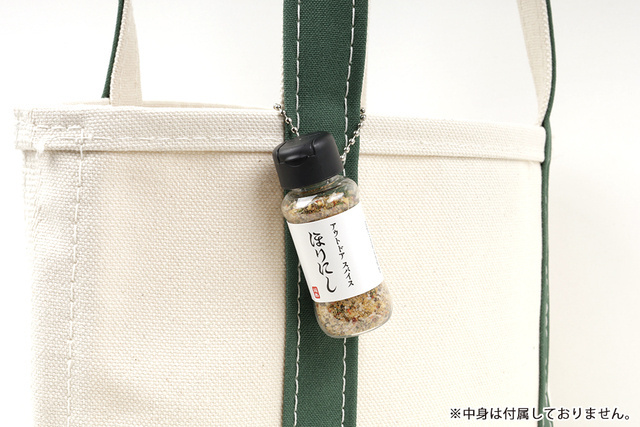 今回、MAKUAKEで応援購入した人限定で、アウトドアなどへのスパイスの携帯に便利な「ほりにし」携帯ケース、通称「ちびにし」がついてくる。アウトドアに持って行くのもよし、ふだん使いのバックに忍ばせてお弁当にひと振りするもよし、毎日の食のシーンに「ほりにし」が欠かせなくなることまちがいなし。