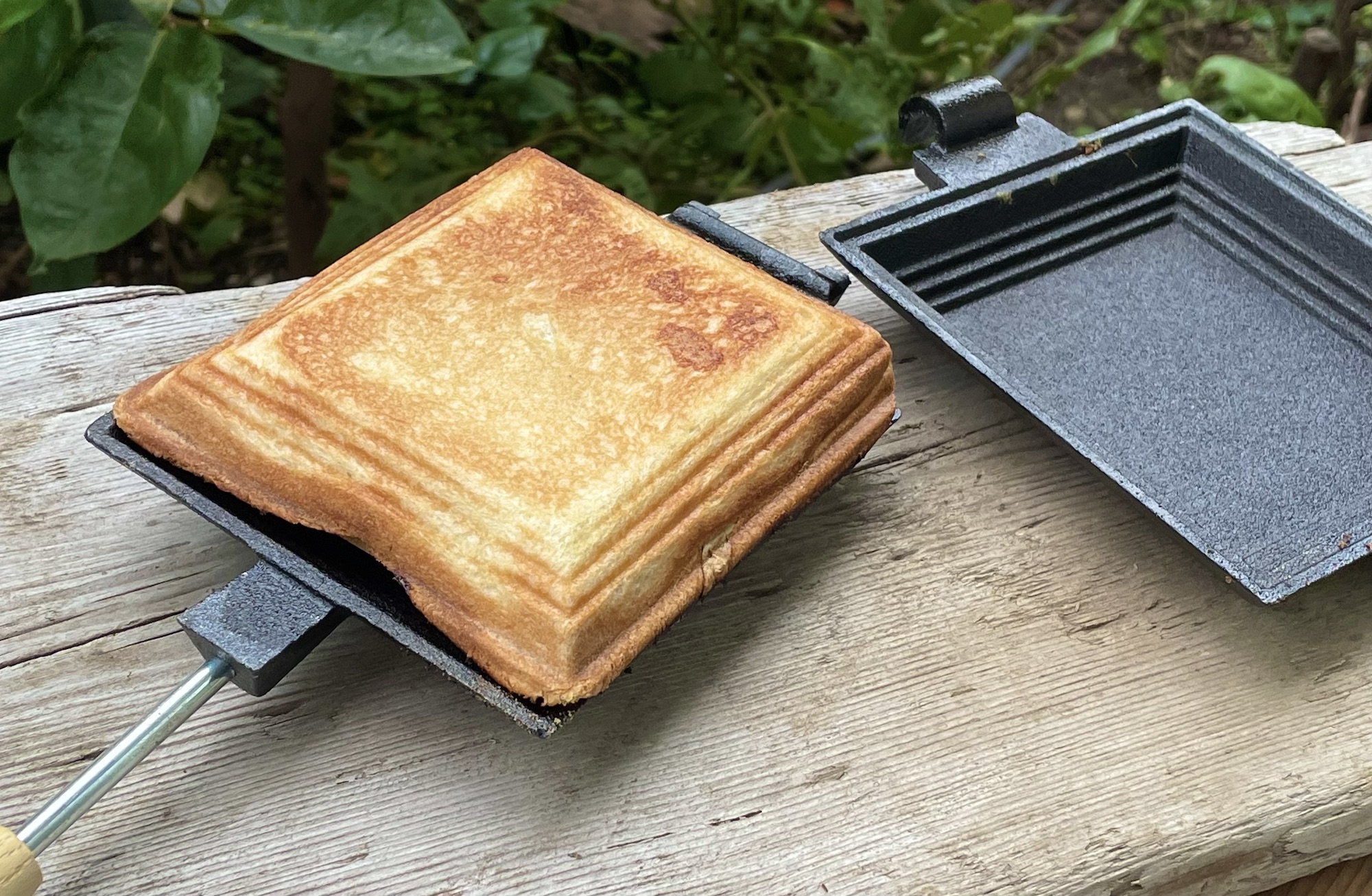 そして、価格。上記の条件を満たす鋳鉄製のものは比較的高価なものが多い。しかし、ホットサンドはありがたい道具でつくるものでもない。出がけに思いついて焚き火セットにガサっと突っ込めるくらいの存在感がちょうどいい。