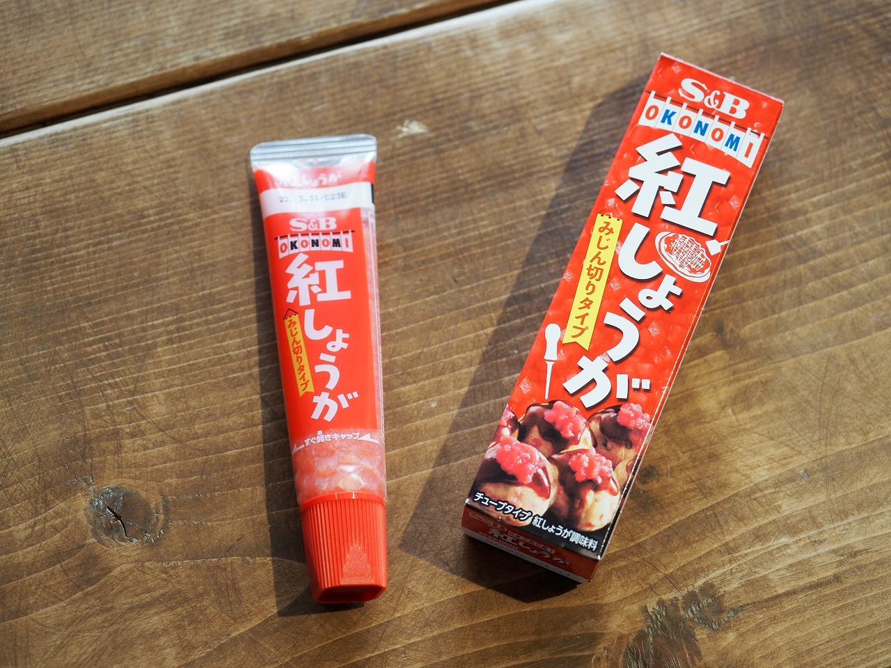 上にのっているのがチューブの紅ショウガ。なんか紅ショウガっぽくないですが……。