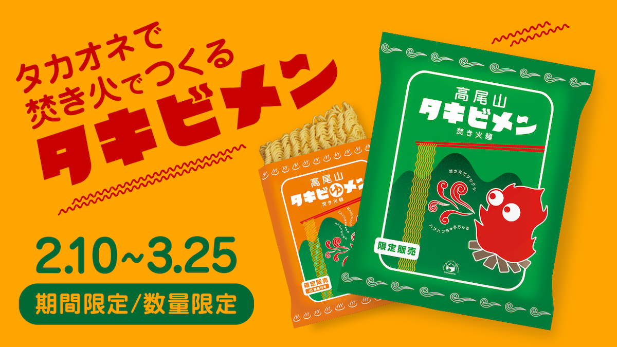 2月10日から「高尾山タキビメン」という、なんとも不思議なネーミングの食べ物が発売されるという情報を得た!「高尾山」はわかるが、「タキビメン」は “焚き火” と “麺” ということでいいのだろうか……!? 文字だけではなにが出てくるのかさっぱりわからない。なんとさらに「高尾山タキビゆメン」という仲間も存在するらしいのだ。