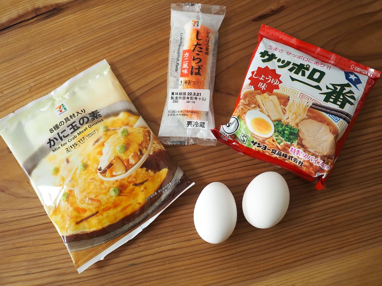 そして「したらば」。こちらはカニ風をブーストするために使うのですが……。なんとセブンイレブンのかにかま商品は「カニカマバー」「カニ酢で食べるお刺身かにかま」「カニ風味かまぼこ」、そしてこの「したらば」と、全部で4種もあるのです! ここはお好みでどうぞ。
