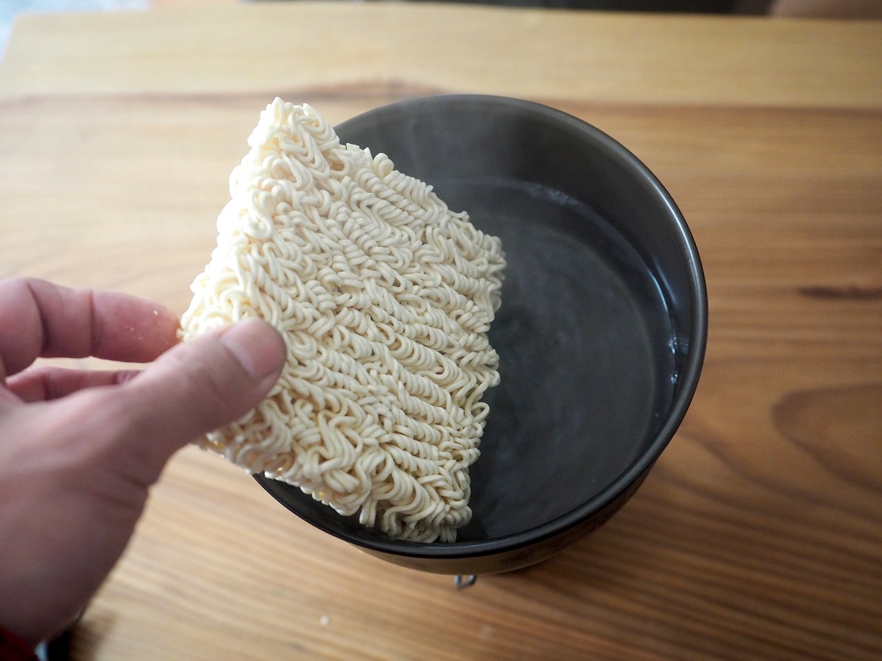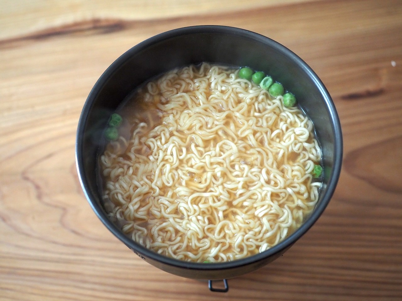 もうひとつのコッヘルに水400㏄くらい(普通のコップ2杯くらいね)入れて沸かしたら麺を入れて煮ます。
