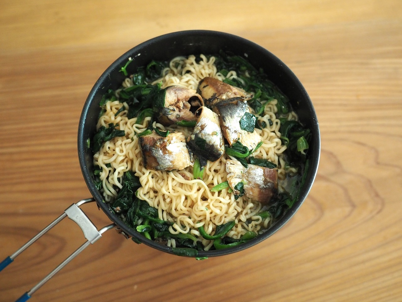 新感覚パスタ的ラーメン!「ものぐさ男の山ごはん79」は山で海を感じるイワシのレモンラーメン
