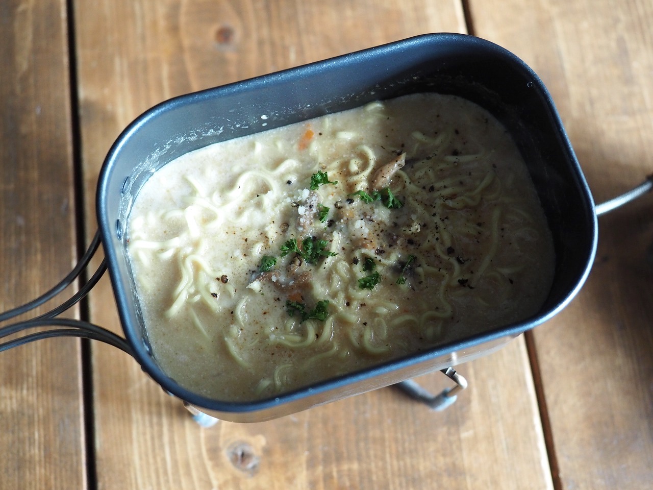 クラムチャウダー×味噌コンビは冬こそ食べどき!「ものぐさ男の山ごはん83」は濃厚味噌クラムチャウダーメン