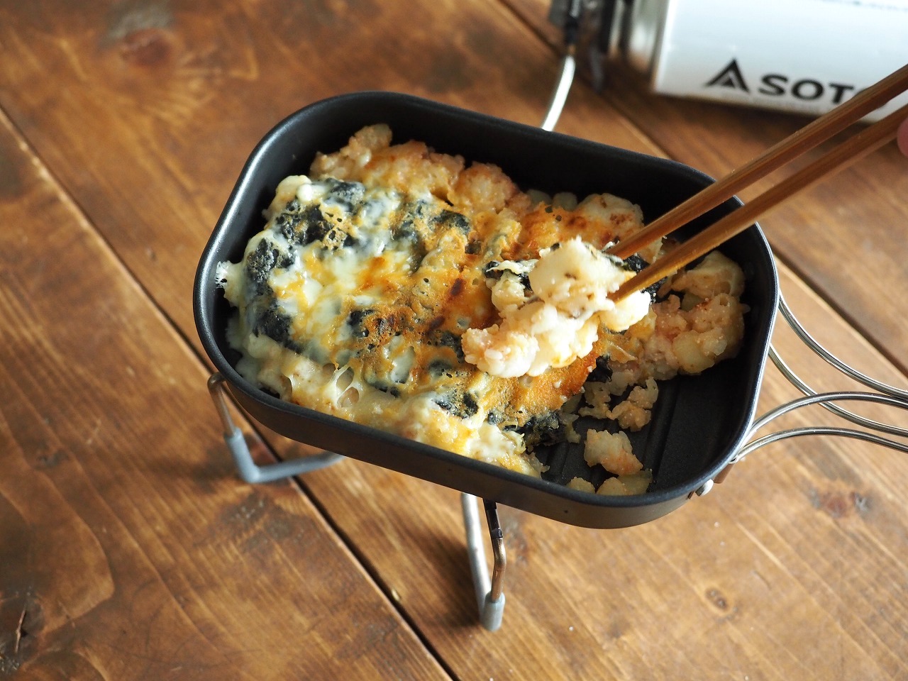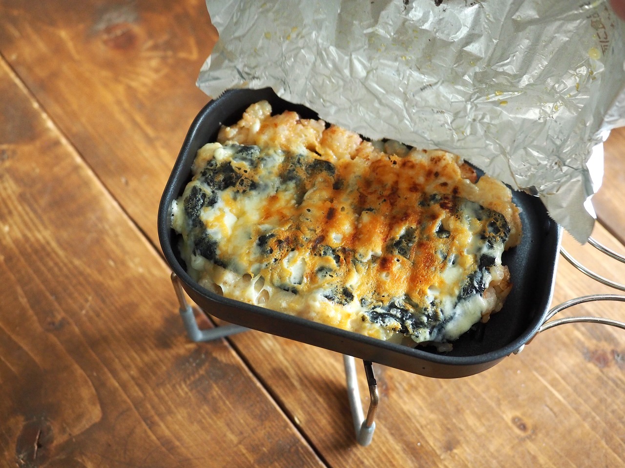 明太子とモチを合わせた人は天才ですね。「ものぐさ男の山ごはん88」は明太もちドリア