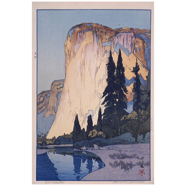 吉田博(1876-1950年)は、明治から昭和にかけて活躍した風景画家。作品のなかでもとくに木版画は、アウトドアブランドのショップやカタログの表紙を飾ることもあり、たびたび目にする機会があった。たとえば《エル・キャピタン》は、見たことがある人が多いのではないだろうか。モダンな印象から、これが90年も前に描かれたものとはとても思えない。