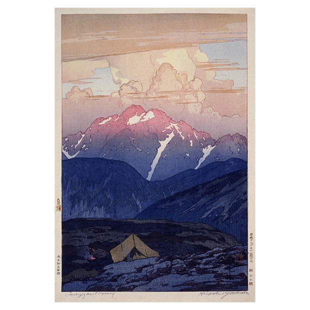 吉田博(1876-1950年) 福岡県久留米市生まれ。早くから画才を見込まれ、洋画家・吉田嘉三郎の養子となる。京都で三宅克己の水彩画に感銘を受け、以来本格的な洋画修業を開始。明治27年に上京し不同舎に入門。小山正太郎のもとで風景が写生に励み技を磨く。明治32年の初渡米をはじめヨーロッパ各地を訪問、作品を発表。それ以降もたびたび各国を巡り水彩画や油絵を発表した。30代前半からは頻繁に山岳をモチーフにし、山篭もりをする。40代後半から木版画に取り組む。写実的で洋画の要素を取り入れた作風は、外国にもファンが多い。