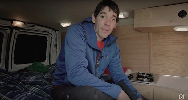 その中にあって、地味だけどじわっと「いいなぁ」と思わせてくれたのが、天才ロッククライマーのアレックス・オノルド。車内は飾り気もなく質素そのもの。ベッドは小さすぎて「斜めに寝ないといけない」そうです。でも、自分の車の中でアレックスはとても楽しそうにバンライフを説明してくれます。そう、クルマまで含め、好きなものに囲まれて暮らす。それがバンライフの魅力です。