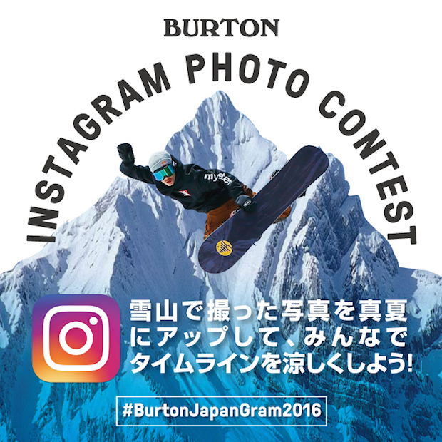 今日から8月12日までの2週間、Instagram上では「Burton Instagram フォトコンテスト」が開催されます。以下の応募要項でエントリー。みんなで写真を共有し合って、盛夏を乗り切ろうという趣旨です。