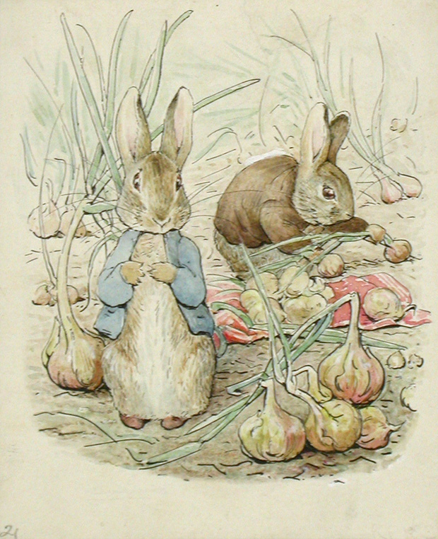ビアトリクス・ポター 《『ベンジャミン バニーのおはなし』の挿絵のための水彩画》