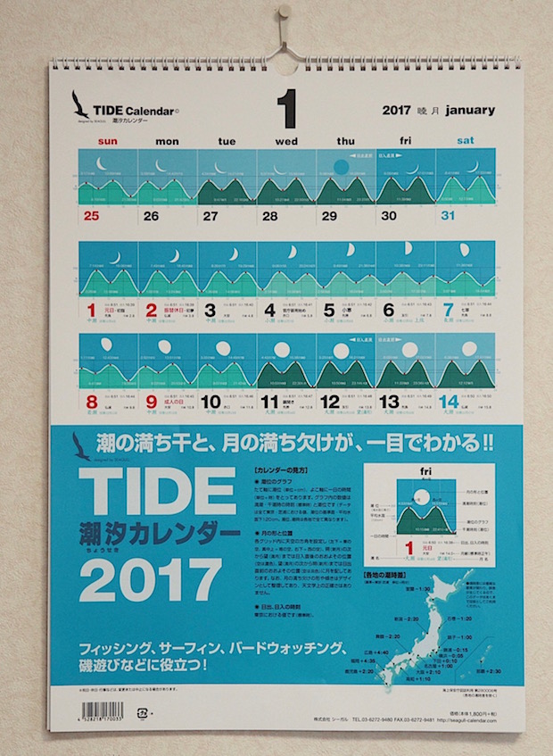 こんなふうに、地球と自分の予定を一緒に管理できる潮汐カレンダー。1年に数回しかない好機を逃さないためにも、ぜひ手に入れておきたいカレンダーです。