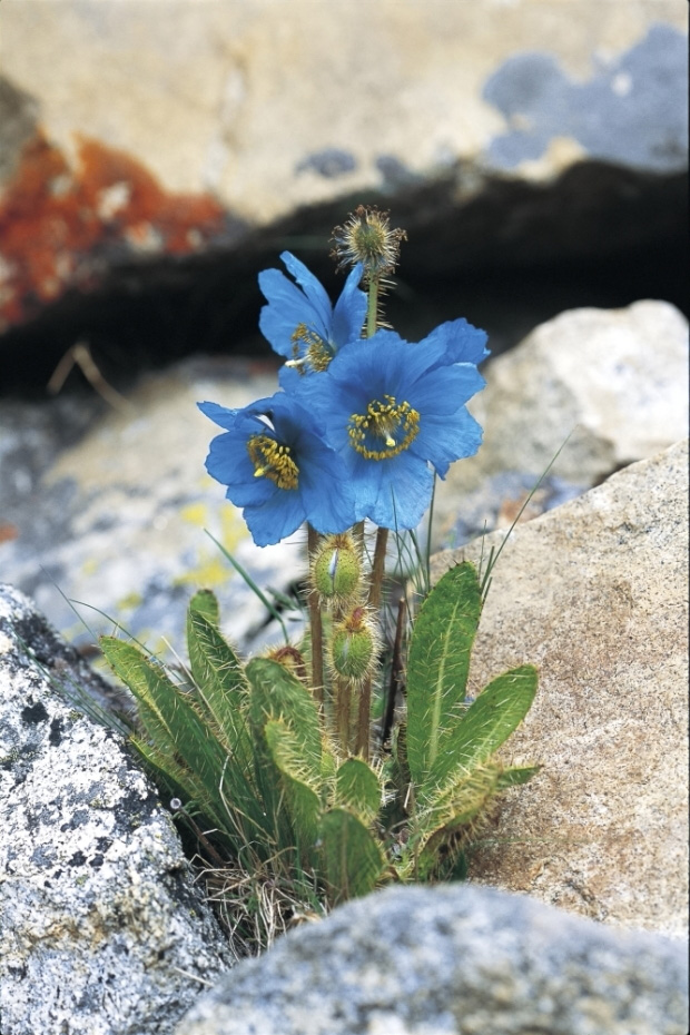 標高5200m、生育可能な環境のギリギリの限界点で咲く野生本来の青いケシ。まさにそこは桃源郷と呼ぶべき秘境であった。(c)木原浩(メコノプシス・ホリドゥラ/ケシ科/ネパール・ゴーキョ)