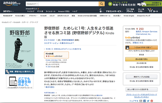 あの幻の『野宿野郎』が、デジタル(Kindle版)で読めるってよ