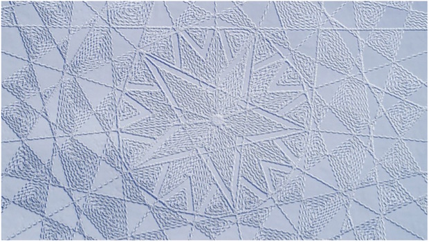 そして、この有志集団が、田舎館村の今後のスノーアートを支える「It's OK.」というチームになりました。チーム名は、代表の須藤貴子(SUTO・TAKAKO)さんらとサイモン氏が、「It's OK?」「It's OK!!」と、片言の英語で意思疎通をしながらアート制作を教わったことから、名づけられたといいます。今年の冬は、「It's OK.」とサイモン氏のデザインを融合したコラボアートを制作。サイモンさんが得意とする丸と、津軽伝統の刺子を融合させたデザインです。