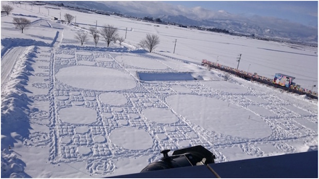 青森県・田舎館村の雪に覆われた田んぼに、足だけで描いたスノーアートがスゴすぎる!!
