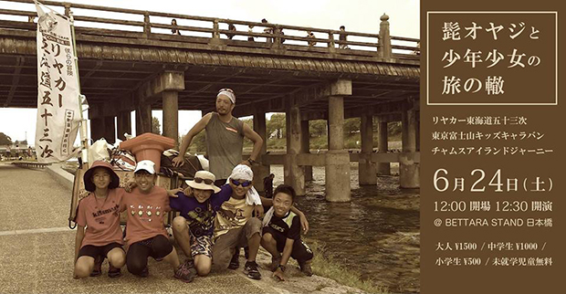 「普段はゲストトークばかりで自分の話はあえて控えていたんですが、今回初めて『なぜ子どもたちとゆくのか』『なぜ冒険旅なのか』『なぜ少人数に拘るのか』『なぜ徒歩なのか』『なぜリヤカーなのか』ということをお話させていただこうと思います」(大木ハカセ談)