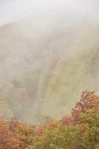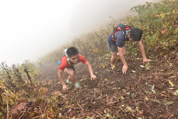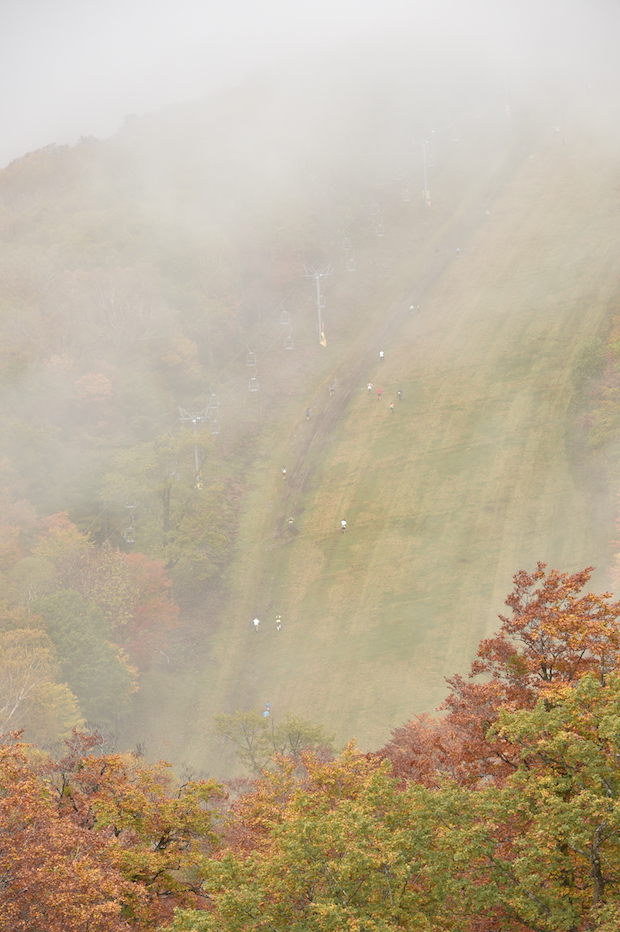 距離1kmで約300mを駆け上がる最後の難関。ここを登破すれば、フィニッシュゲートが現れる。大会当日は深い霧が立ち込め、どこまで登ってもフィニッシュゲートが見えてこない。そんな状況のなか、選手は必死にゴールをめざす。