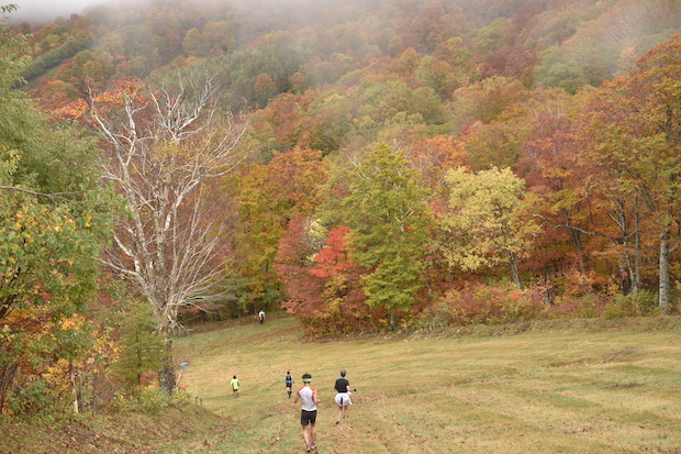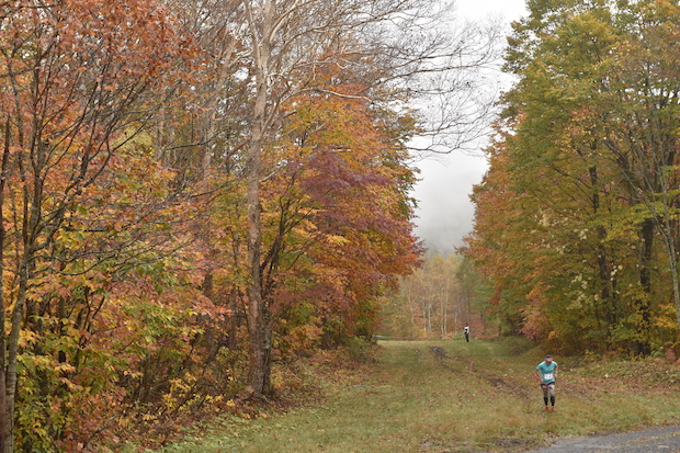 コース中腹の緩斜面区間。曇りがちの天候だったが、みごとな紅葉が選手を出迎えてくれる。ジョセフ曰く「故郷ワシントン州のフィールドに似ていてとても気分よく走れたよ」