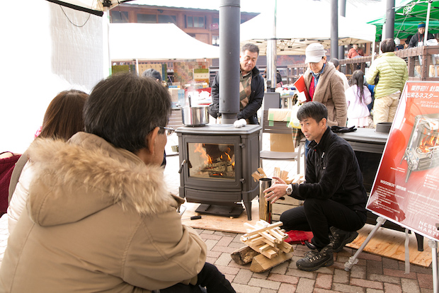 メインとなるのは薪ストーブの体験ブース。メーカー6社による薪ストーブの展示販売に加え、欧州などで普及が進む「ペレットストーブ」も展示。また、薪ストーブを熱源にした料理も実演される。