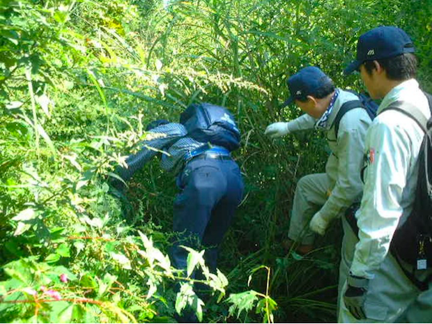そう、楽しかったですよ。完全にジャングルというか、ヤブに還っている森の中から道標を探すんだから。すごいなあと感心したのは、50年前に測量した地図がものすごく正確だったことです。足元の道標から次の道標までは何度何分の角度で、55m先にあると地図に落とし込まれていました。北信森林管理署の職員が後ろで角度を図って、指示する方向へメジャーを持ってひたすらまっすぐ行く。そしたら「とまれー!」って声がかかる。「その辺にあるよー」って、足元をしらみつぶしに探すと朽ちかけた道標が倒木の下にでてくる。トレイルの選定はその繰り返しでした。