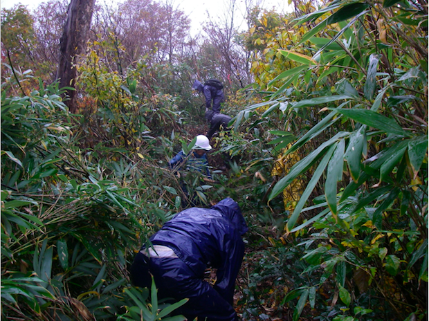 豪雪地帯にある関田山脈のヤブは、一度踏み込んだら身動きが取れないほどに濃い。このヤブを人の手で80㎞切り拓くというのだから、その苦労は計り知れないものがある。
