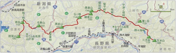 信越トレイルとは、長野県と新潟県の県境、関田山脈に延びる総延長80㎞の山道だ。