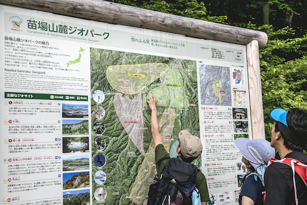 JR森宮野原駅から苗場山までは苗場山麓ジオパークのエリア内。さまざまな地形や地質から、地球の息吹を感じられる稀有なフィールドだ。まさにロングトレイルのフィールドにぴったり。
