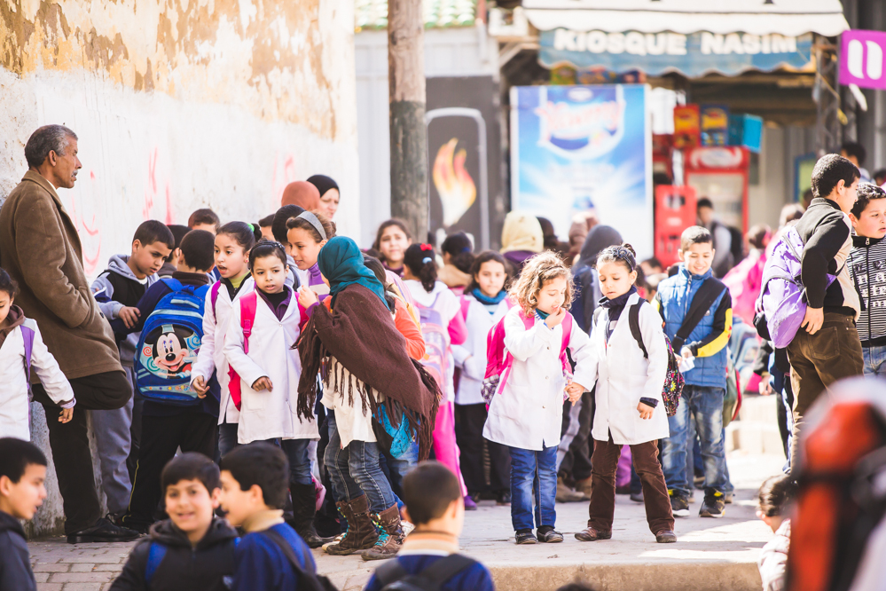 迷宮の街フェズで、案の定、道に迷っていたら、下校する小学生に出会った。世界遺産に住んでいる小学生って、なんかいいな〜