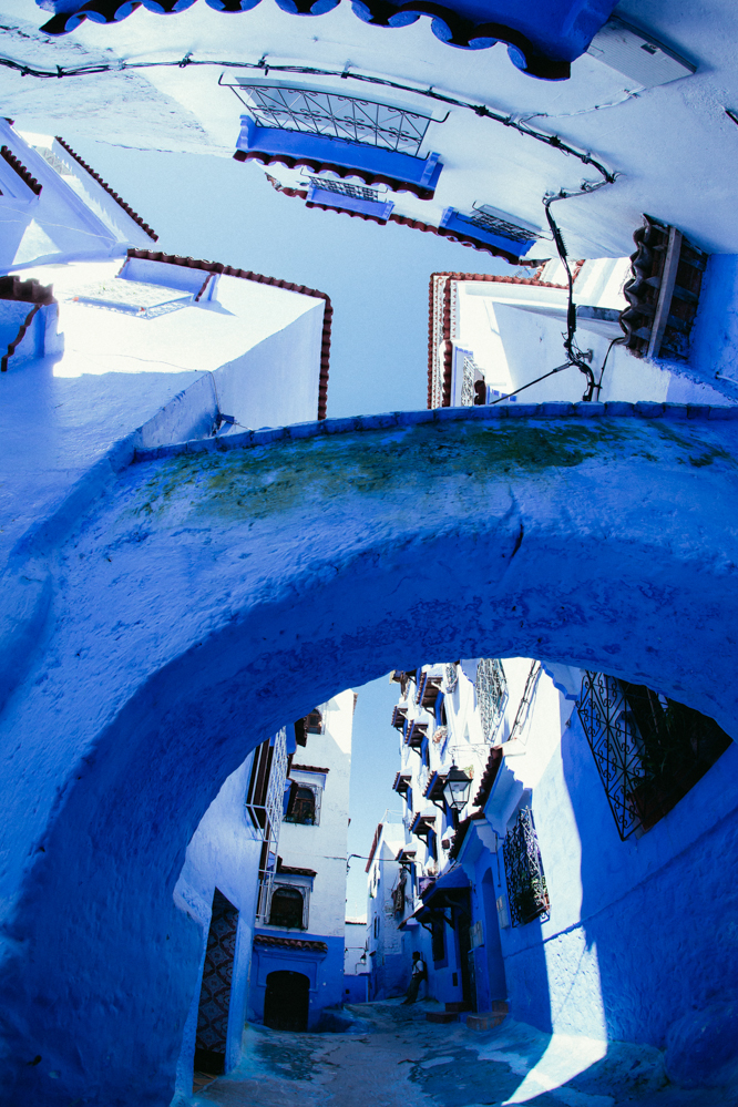 青い街で有名なシャウエンは本当に何もかも青かった。建物は全て青、電柱や柵も青、タクシーも青、空も青(それは当たり前だって?)