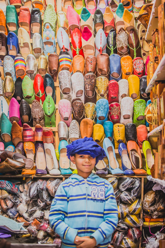 モロッコ伝統のスリッパ「バブーシュ」のお店。モロッコ土産は日本人に喜ばれるものが多い