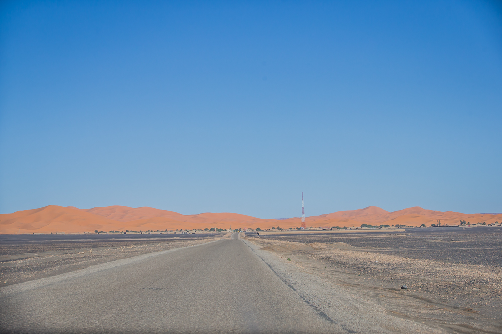 アトラス山脈を超え、世界遺産のアイトベンハッドゥを豪快に素通りして、アルジェリア国境近くのメルズーガ大砂丘へ。空と砂丘のコントラストがやばい!