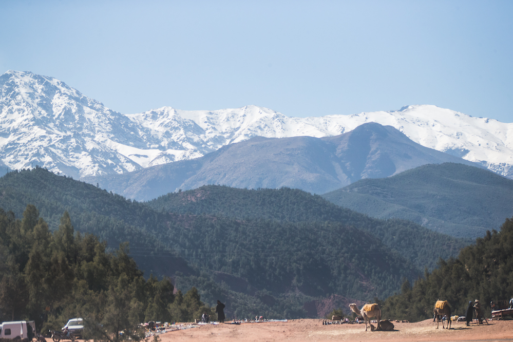 粘土で作られた迷宮のようなマラケシュの旧市街を抜けて、サボテンが目立つ荒涼とした平原を南へ40分。俺たちの目の前には行く手を遮る壁のように、長大な山脈がどっしりと横たわっていた。